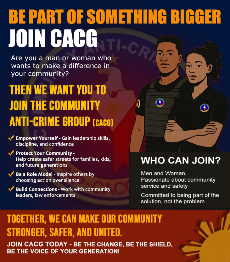 “If you want to be part of the PNP’s efforts in securing your community, join CACG today”